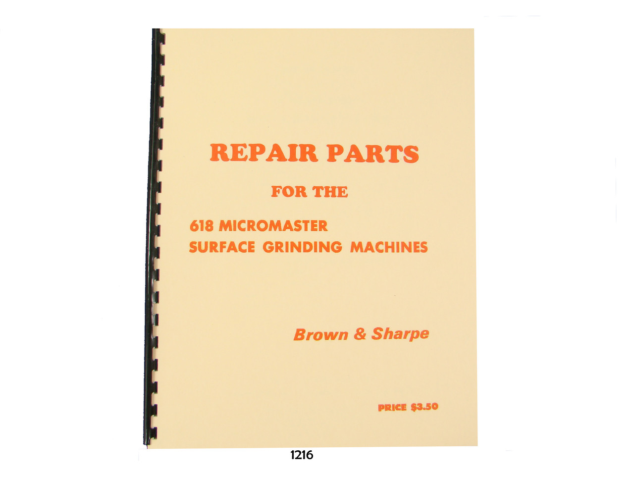 Description: This is a Repair Parts manual for the Brown & Sharpe 618 Micromaster Surface Grinding Machine. It has exploded parts views and parts lists. It also covers the Radius and Angle Wheel Truing Attachment, Over the Wheel Truing Attachment, High Speed Surface Grinding Attachment, Index Centers, & Wet Grinding Attachment. It has 52 pages. To inspect the quality, and to view select pages, please click on the gallery images above to enlarge.