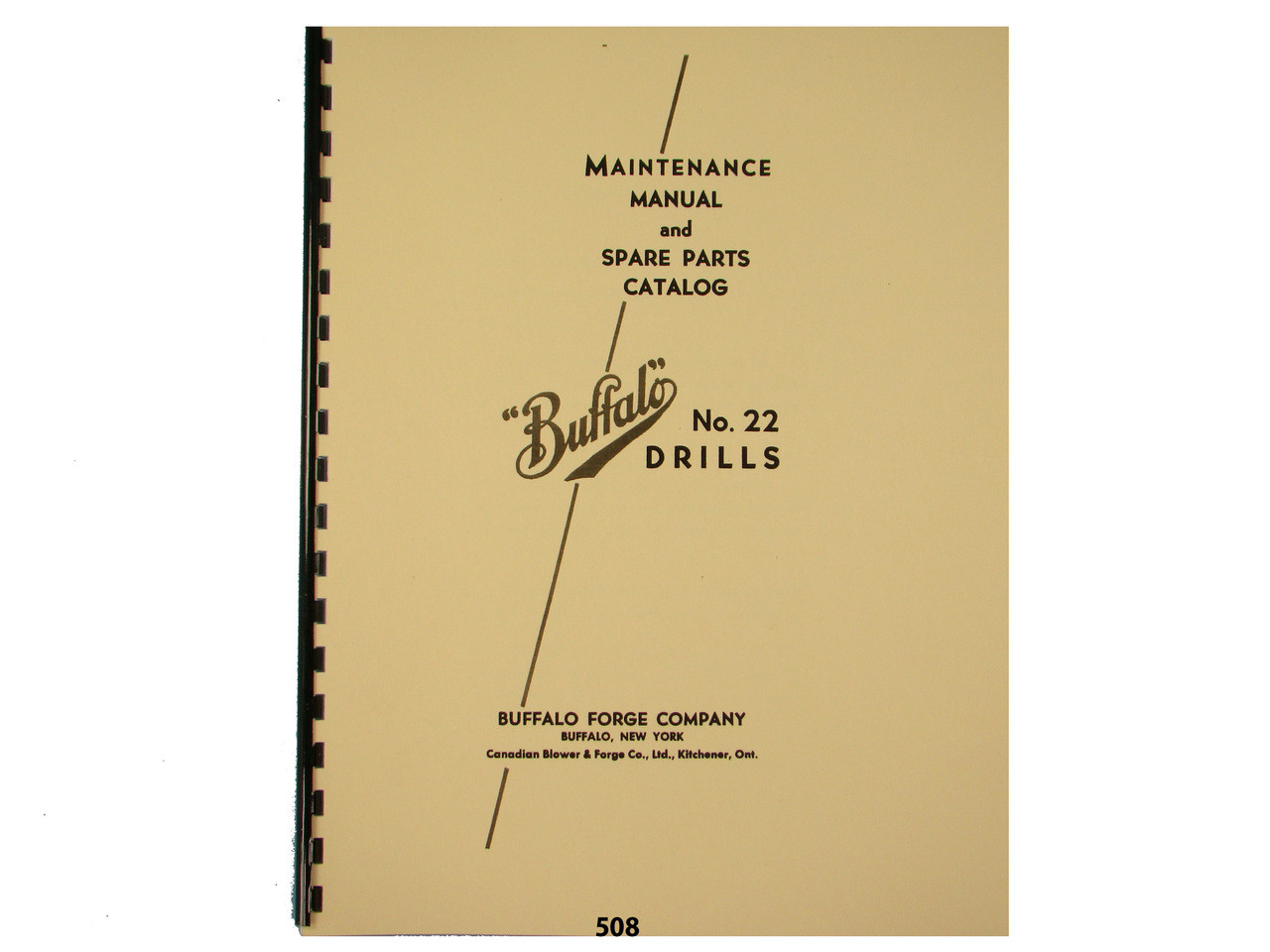 Description: This is a Maintenance and Parts List manual for the Buffalo Forge No. 22 Drill Press. It has sections on: Operation, Maintenance, Cutaway Parts Diagrams, & Parts List. It has 32 pages. To inspect the quality of the manual, to view the table of contents, and to view select pages, please click on the gallery images above to enlarge.