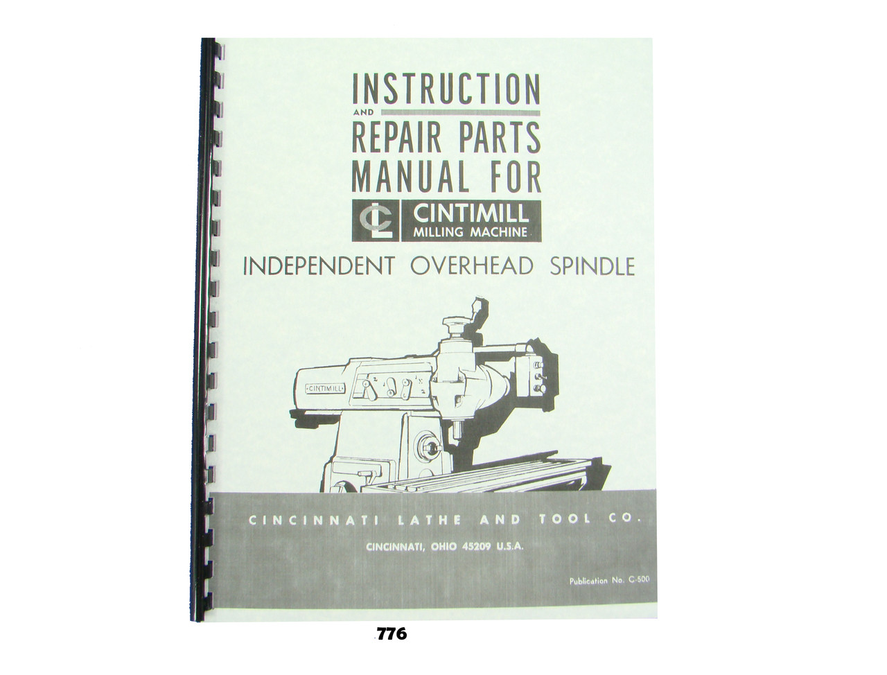 Description: This is an Instruction and Repair Parts List Manual for the Cincinnati Independent Overhead Spindle as used on the Cintimill machines. It has sections on: Lubrication, Dismantling, Functional Diagrams, Optional Hand Quill Feed, & Repair Parts Section with Exploded Parts Views. The manual has 19 pages. To inspect the quality of the manual, to view the table of contents, and to view select pages, please click on the gallery images above to enlarge.