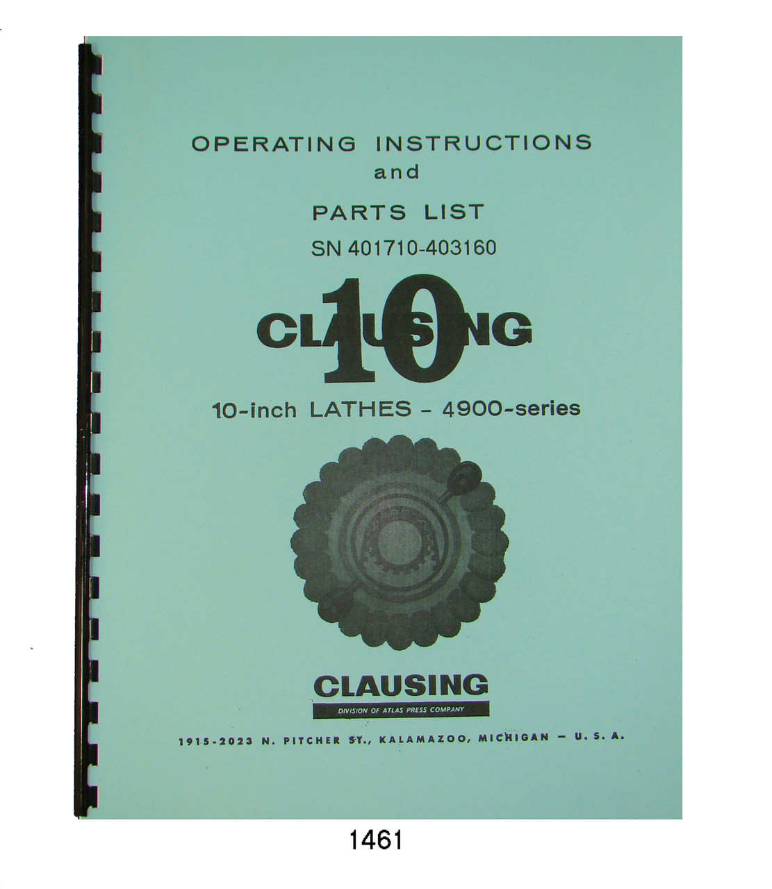 Description: This is an Operation & Parts List Manual for the 10" Series 4900 Clausing Lathe. It has instructions on Operation, Lubrication, Maintenance, Drive belts, & Adjustments & Complete Parts Breakdown. The manual has 35 pages. To inspect the quality of the manual, to view the table of contents, and to view select pages, please click on the gallery images above to enlarge.