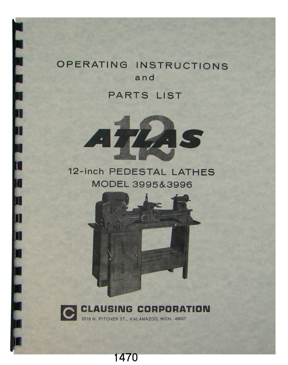 Description:This is an Operating Instruction and Parts List Manual for the Clausing 12" Lathe Models 3995 & 3996. It has instructions on how to level the lathe, control functions and operation, Maintenance, & Adjustments. It also has instructions for lubrication. It contains a complete parts list with assembly breakdown drawings. It is dated 1974 and has 28 pages. To inspect the quality of the manual, view the table of contents, and to view select pages, please click on the gallery images above to enlarge.