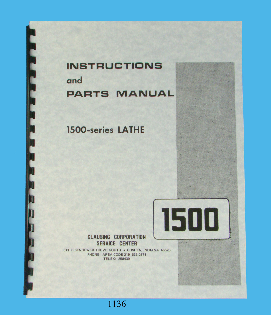 Description:This is an Instruction & Parts List Manual for the 14" Series 1500 Clausing Lathe. It has instructions on Operation, Installation, Lubrication, Controls, Maintenance, Adjustments, and a complete parts breakdown. The manual has 48 pages and includes foldout pages on the Headstock and Drive Assemblies. To inspect the quality of the manual, to view the table of contents, and to view select pages, please click on the gallery images above to enlarge.