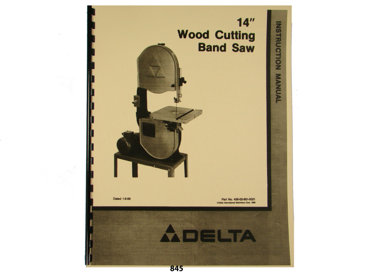 Description: This manual covers the above models of the Delta 14" Wood Cutting Band Saws. It covers: Operation, Lubrication, Blades, Blades, exploded parts view, and parts lists. It has 20 pages. It was printed in 1989. To inspect the quality of the manual and to view select pages, please click on the gallery images above to enlarge.
