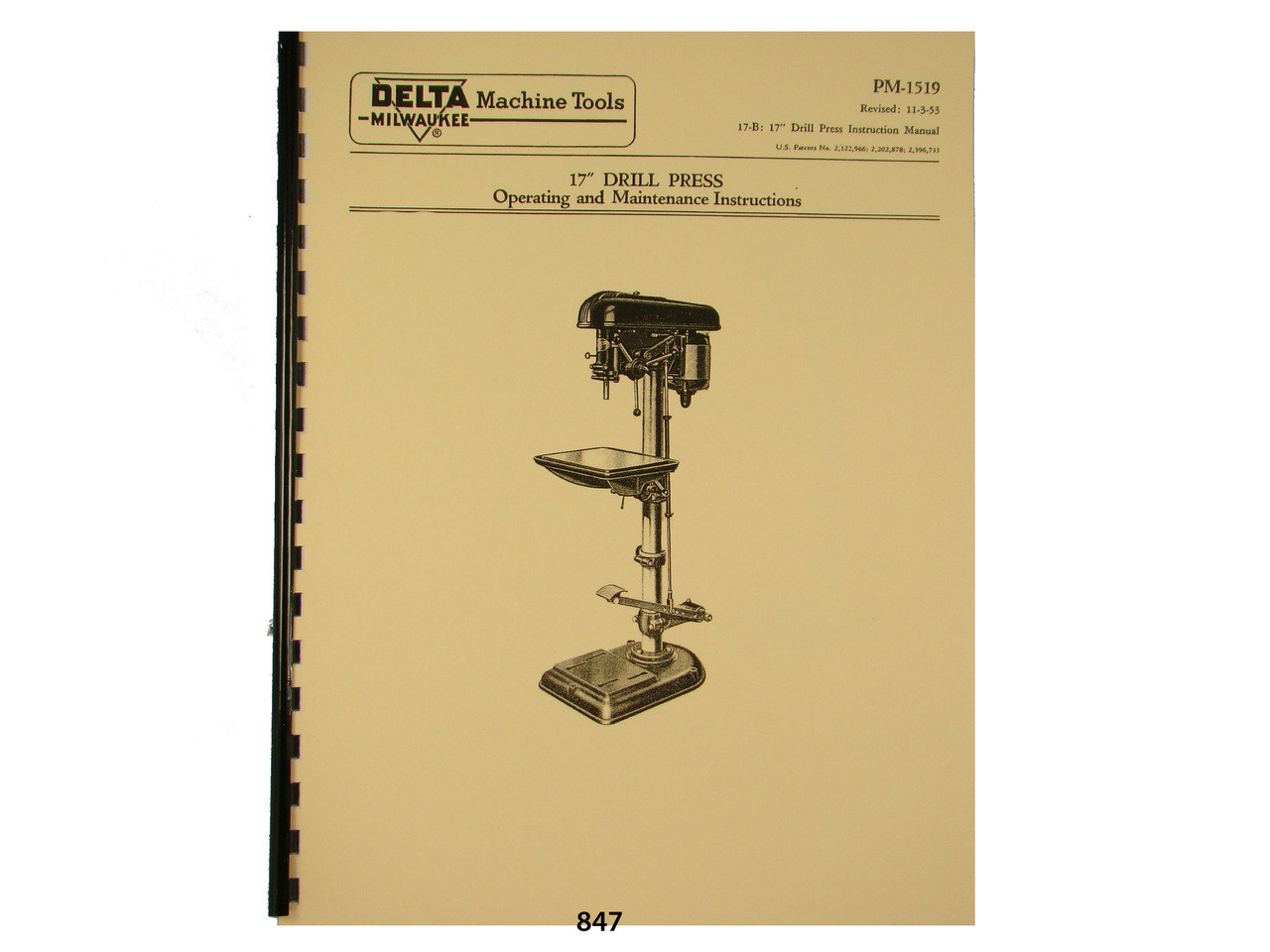 Description: This is a Operators and Parts List manual for the Delta Milwaukee 17" Drill Press. It covers both the hand and powerfeed models. It has sections on: Operation, Exploded Parts Diagrams, & Parts List. It has a parts list supplement No DP-10 dated June 1984. It has 14 pages. To inspect the quality of the manual, and to view select pages, please click on the gallery images above to enlarge.