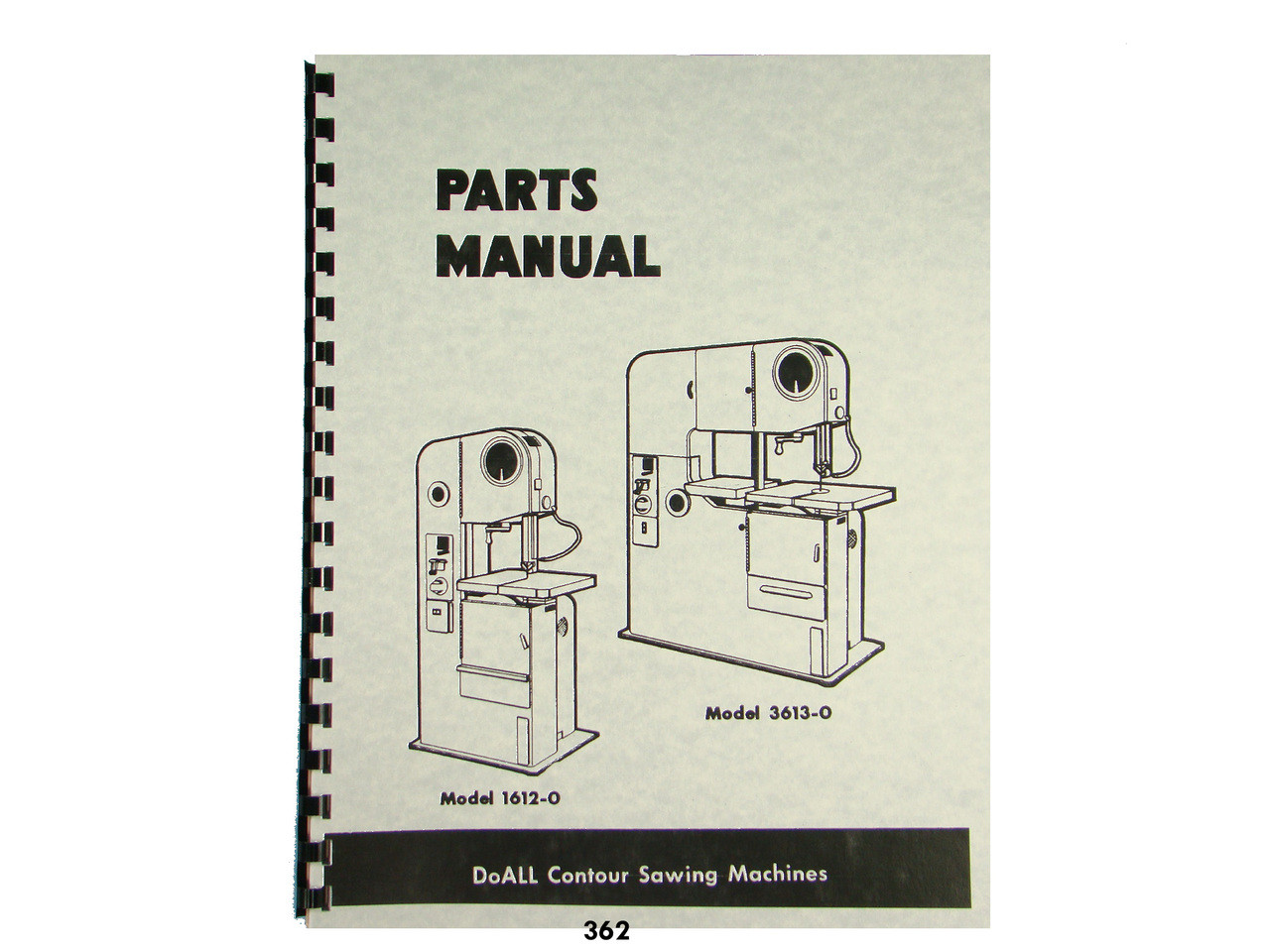 Description: This manual covers the parts breakdown, part numbers, and assembly drawings of the DoALL model 1612-0 & 3613-0 contour sawing machine. To inspect the quality, please click on the gallery images above to enlarge.