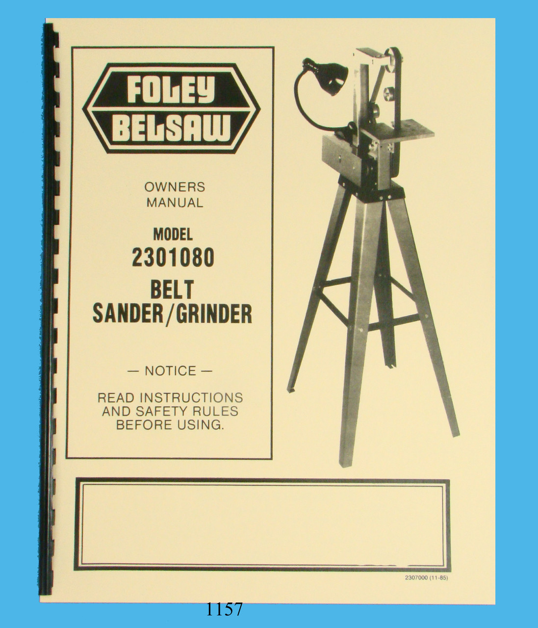 Description:This manual covers the Operating & Parts List of the Foley Belsaw Model 2301080 Belt Sander / Grinder. It contains the Operating Instructions, how to sharpen various tools, and also has an exploded parts diagram and parts list. It has 32 pages. To inspect the quality of the manual, to view the Table of Contents, and to view select pages, please click on the gallery images above to enlarge.