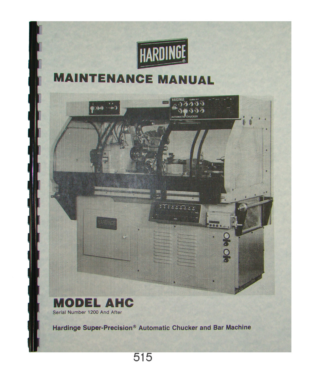 Description: This is a Maintenance Manual for the Hardinge AHC Super-Precision Automatic Chucker and Bar Machine. It is a comprehensive manual that covers Adjustments, Disassembly and Reassembly, Lubricants, Preventative Maintenance, and much more. It contains 64 pages. To see what all the manual covers, please view the Table of Contents above. To inspect the quality of the manual, and to view select pages, please click on the gallery images above.