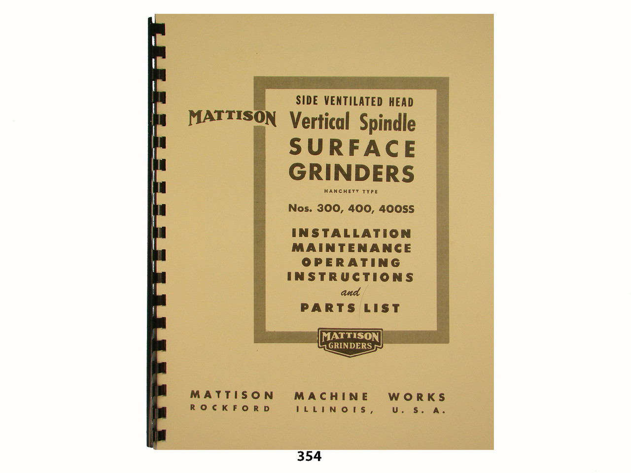 Loading... Please wait...Mattison Nos. 300, 400, 400SS Vertical Spindle Surface GrindersInstallation, Maintenance, Operating & Parts List Manual