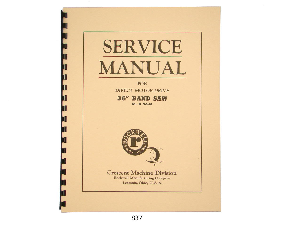 Description: This manual covers theRockwell/Crescent Band Saw model B36-16. It covers: Operation, How to Braze Band Saw Blades, Assembly Instructions, Adjustments, parts view, and parts lists. It has 14 pages. To inspect the quality of the manual and to view select pages, please click on the gallery images above to enlarge.