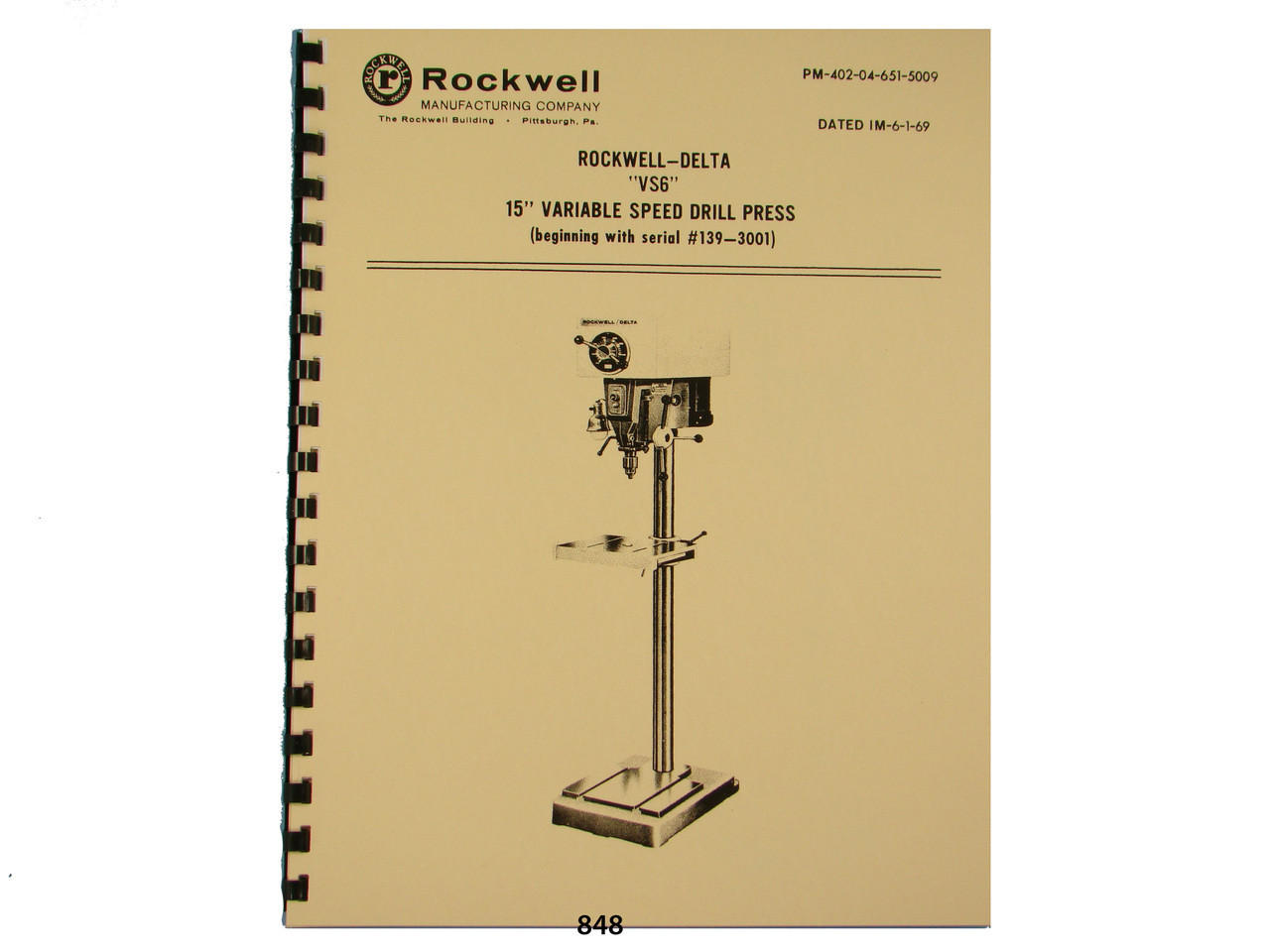 Rockwell Delta VS6 15" Variable Speed Drill PressOperating & Parts List Manual