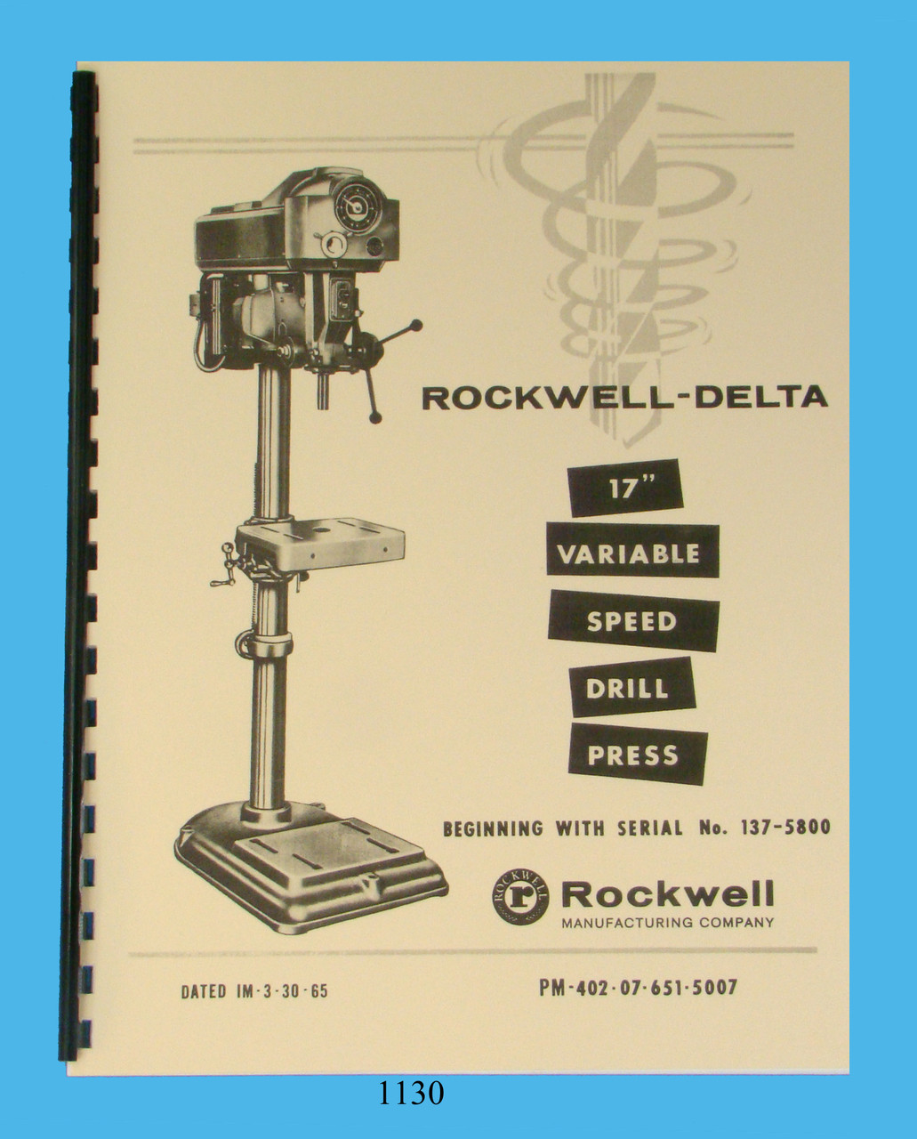 Description:This is an Operation and Parts List manual for the Rockwell / Delta 17" Variable Speed Drill Press. It has sections on: Operation, Adjustments, Maintenance, Repairs, Exploded Parts Diagrams, & Parts List. It has 20 pages. and was printed in 1965. To inspect the quality of the manual, to view the Table of Contents, and to view select pages, please click on the gallery images above to enlarge.