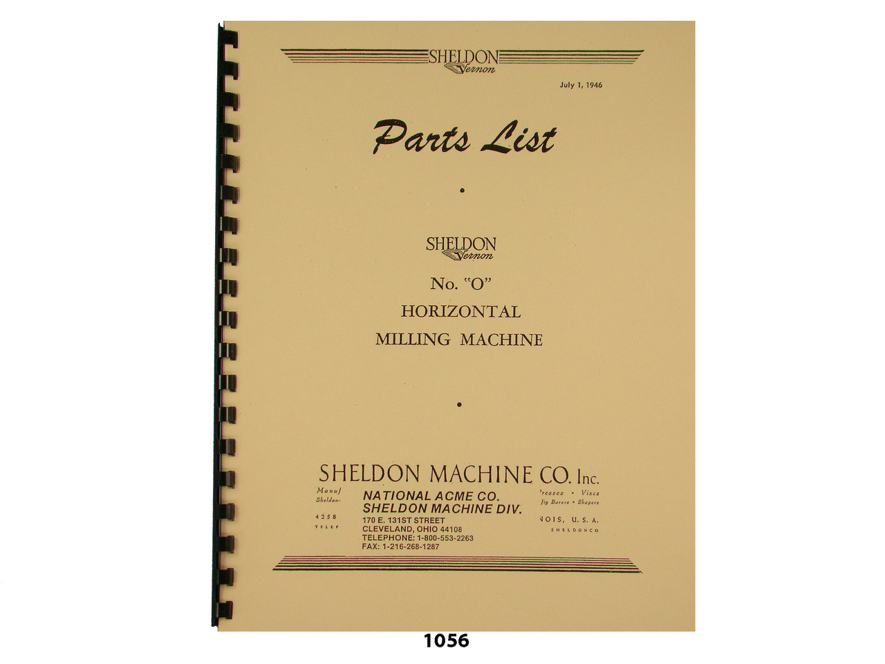 Sheldon No. "0" Horizontal Milling MachineParts List Manual