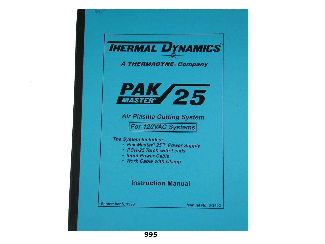 Loading... Please wait...Thermal Dynamics PakMaster 25 110 volt Plasma CutterInstruction & Servicing Manual