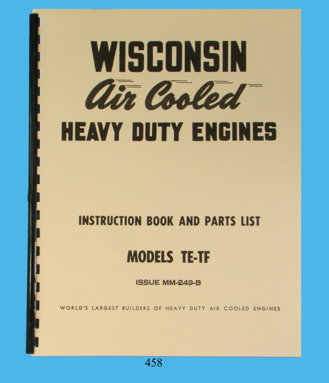 Description: This is an Instruction Book for the Repair and Overhaul of the Wisconsin TE & TF Single Cylinder Engines. It contains all of the information necessary to repair or overhaul the Wisconsin Engine. It contains sections on Adjustments, Disassembly and Reassembly, Governors, Carburetors, Clutches, Lubrication, Magnetos and Repair, Timing, Troubleshooting, Valve Grinding, Etc. It also contains the Exploded Parts Views and Parts Lists of the Engine, Clutch, Reduction Gears, Generator-Starter, Fuel Pump, Flywheel Magneto, & Carburetors. It contains 74 Pages. To inspect the quality of the manual, to view the Table of Contents, and to view select pages, click on the above gallery pictures to enlarge.